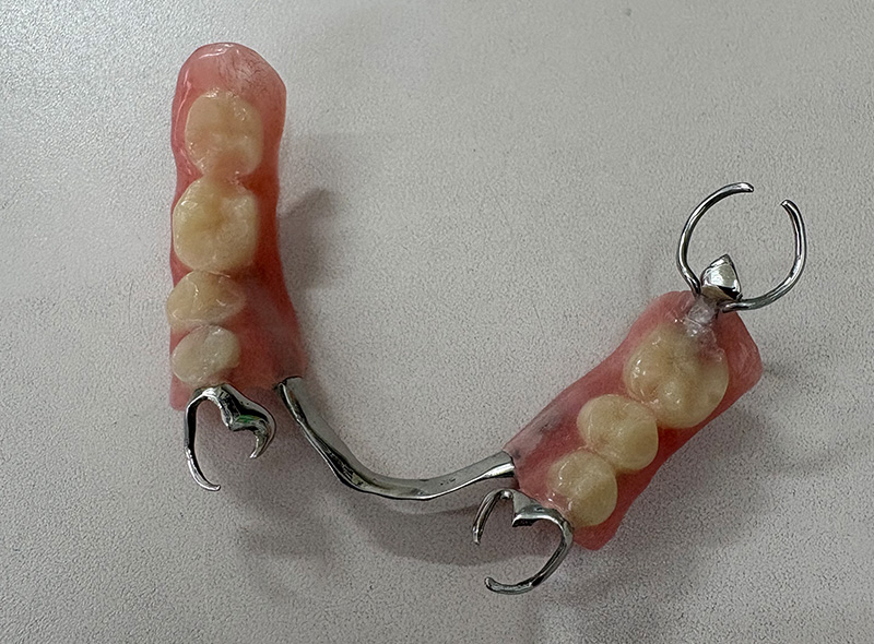 樹脂製なので、設計によっては強度を確保するために厚みが必要なケースもあります。そのため、口腔内での違和感や、金属バネが見えることによる審美的な問題が生じる可能性があります。
