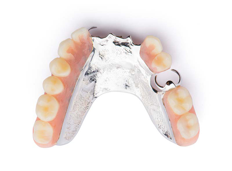 高品質な特殊金属を使用した自費診療の入れ歯です。優れた強度と薄さを両立し、装着時の圧迫感を軽減。熱伝導性が高く、食事本来の温度を感じやすい特徴があります。耐久性にも優れ、長期使用での変形も少なくなっています。